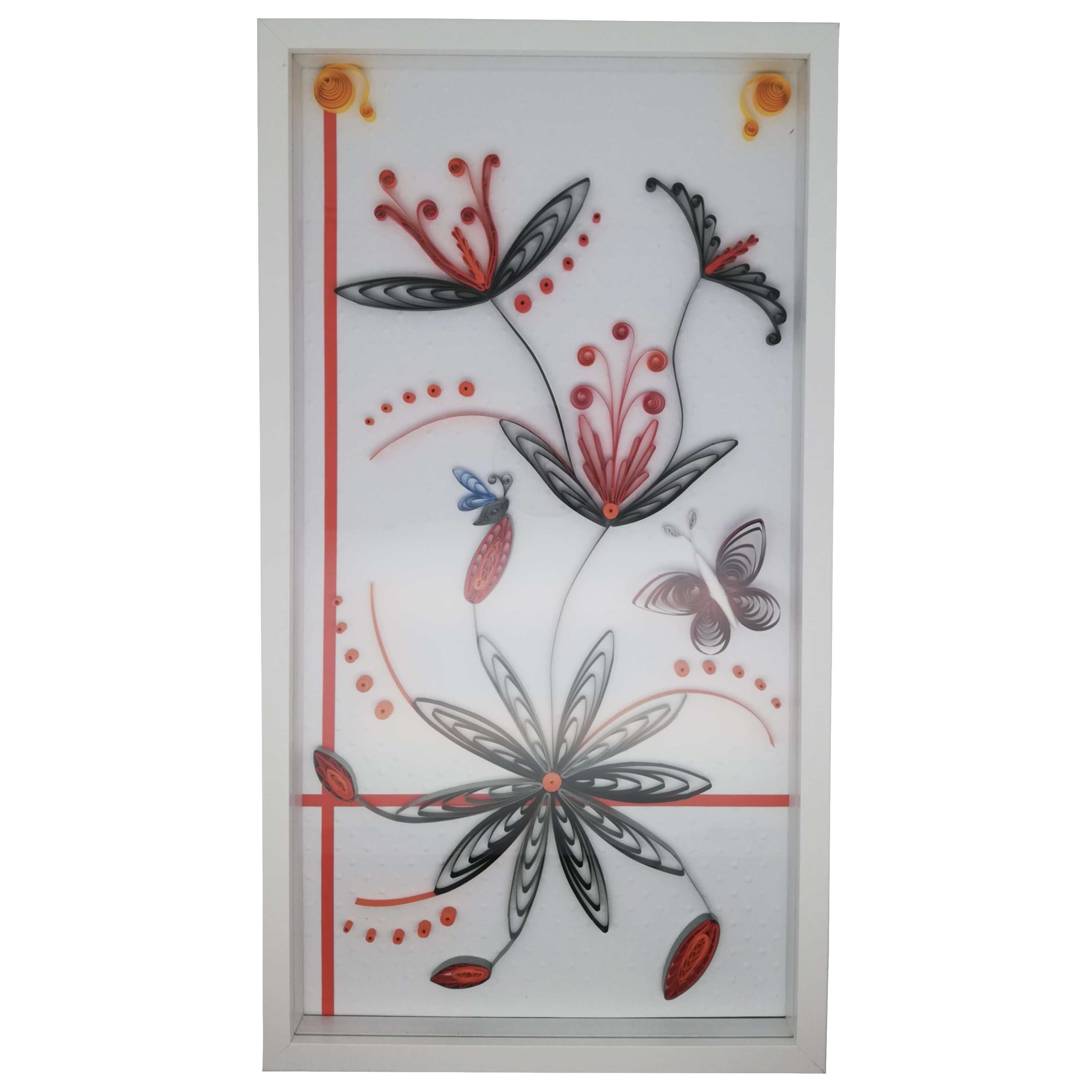 Ce cadre en quilling représentant des fleurs est un magnifique objet de décoration artisanal qui apportera une touche de couleur et d’élégance à n’importe quelle pièce de votre maison. Chaque fleur est minutieusement réalisée à la main à partir de fines bandes de papier roulées et façonnées pour créer des motifs détaillés et complexes.