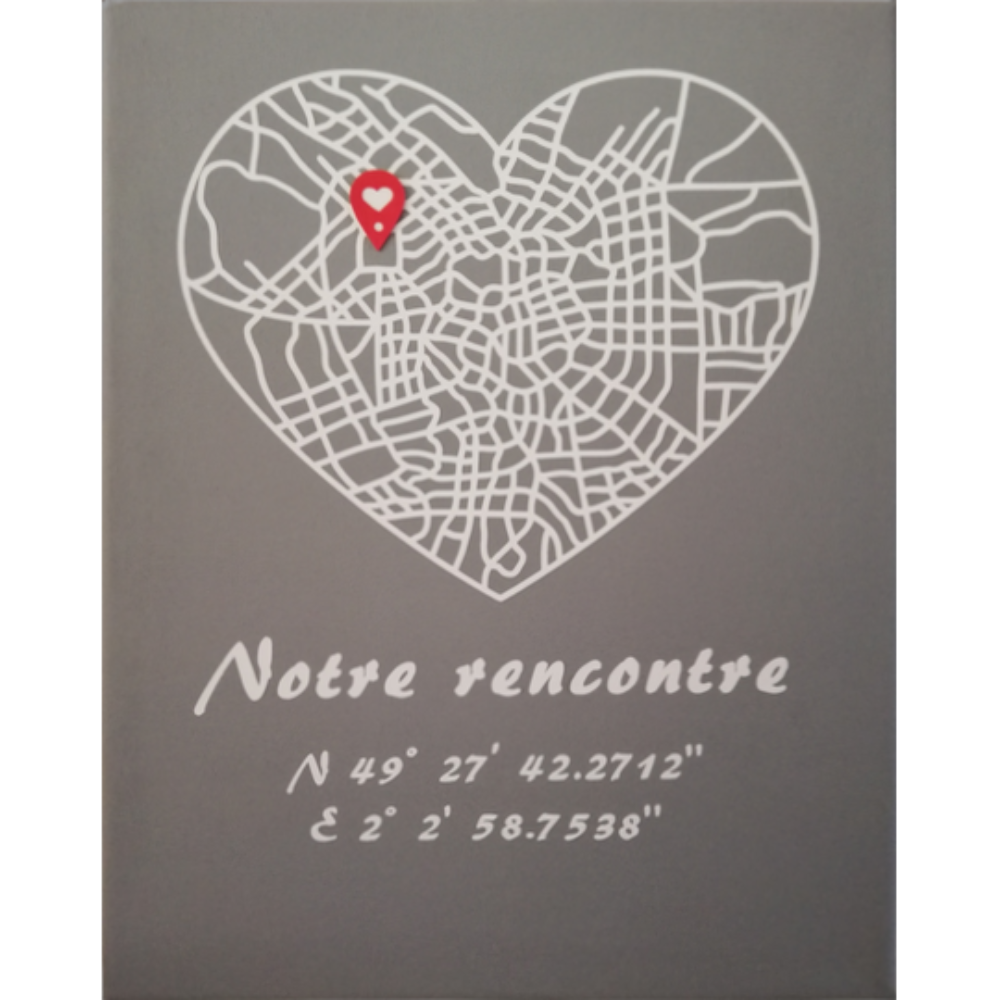Cette toile est une représentation cartographique d’un lieu important de votre vie et sera un véritable atout à votre déco.