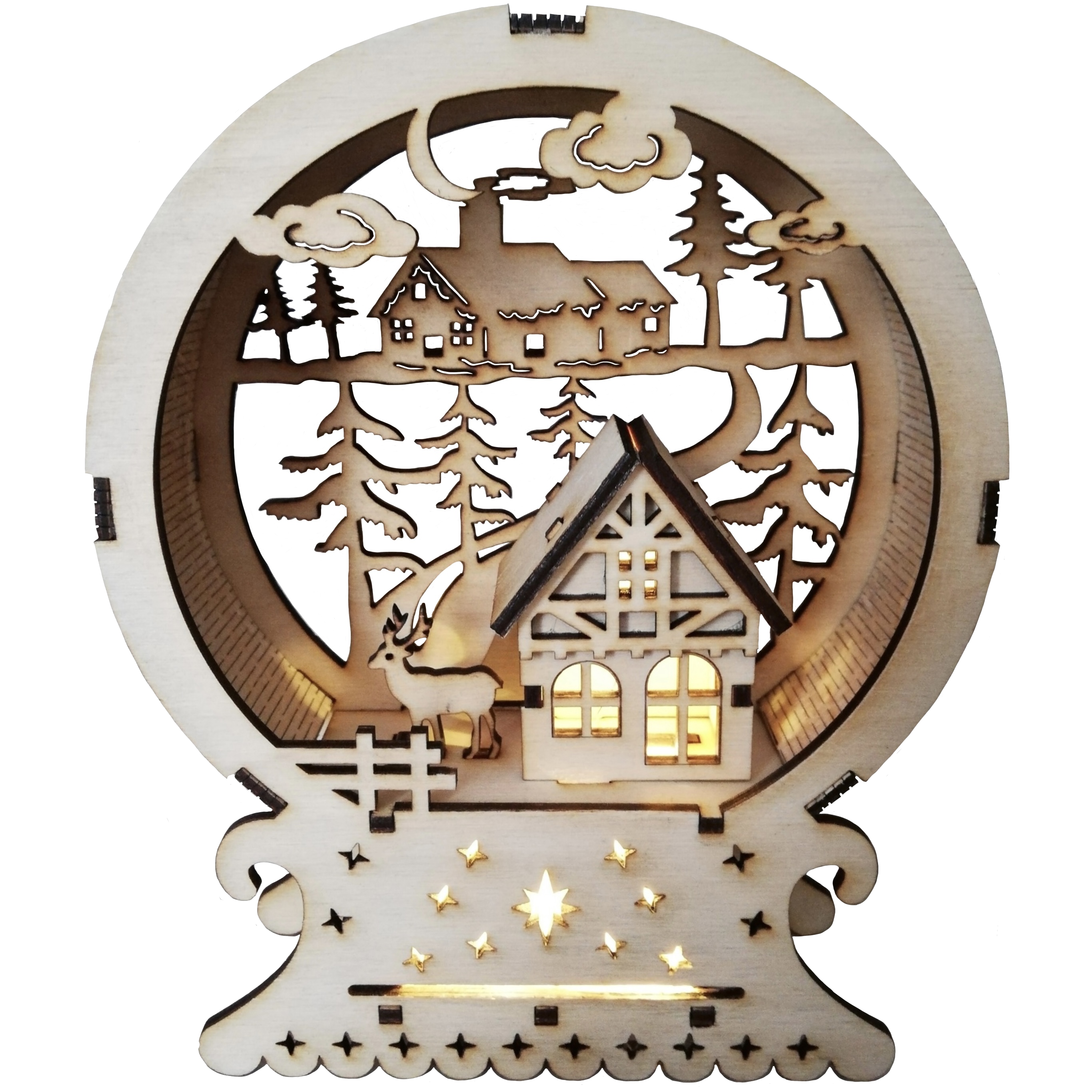 Fabriquée à partir de bois de qualité supérieure, chaque pièce est découpée au laser avec précision pour créer des formes uniques et délicates. La guirlande LED intégrée apporte une touche de lumière supplémentaire pour une ambiance encore plus chaleureuse. Cette décoration est parfaite pour ajouter une touche de style à votre salon ou même sur votre cheminée.