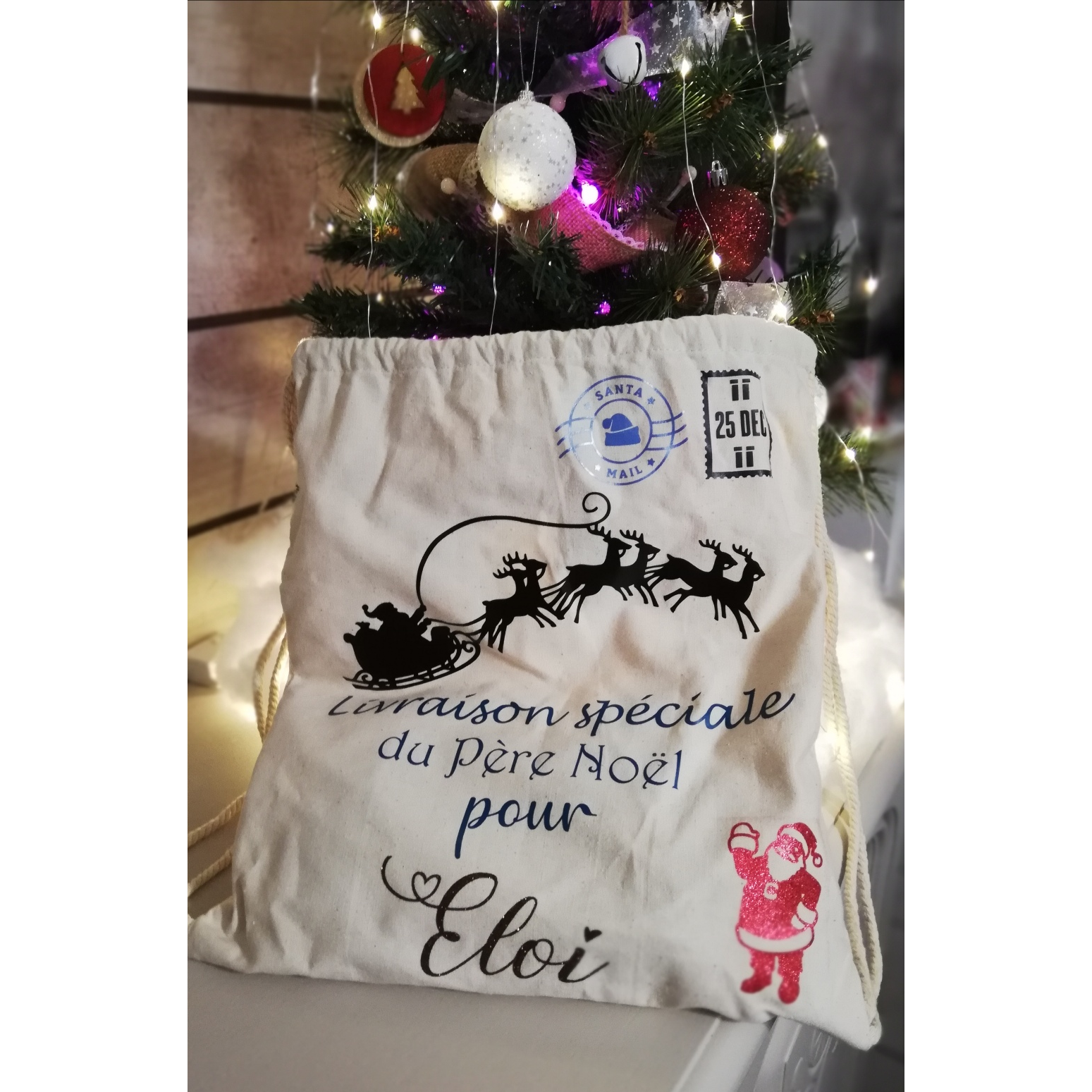 Un tote bag personnalisé pour ranger les cadeaux de Noël pour les enfants ! Avec un design amusant et coloré, ce sac est parfait pour y glisser des surprises et le déposer discrètement au pied du sapin. La personnalisation avec le prénom de l’enfant en fera un objet unique et précieux.